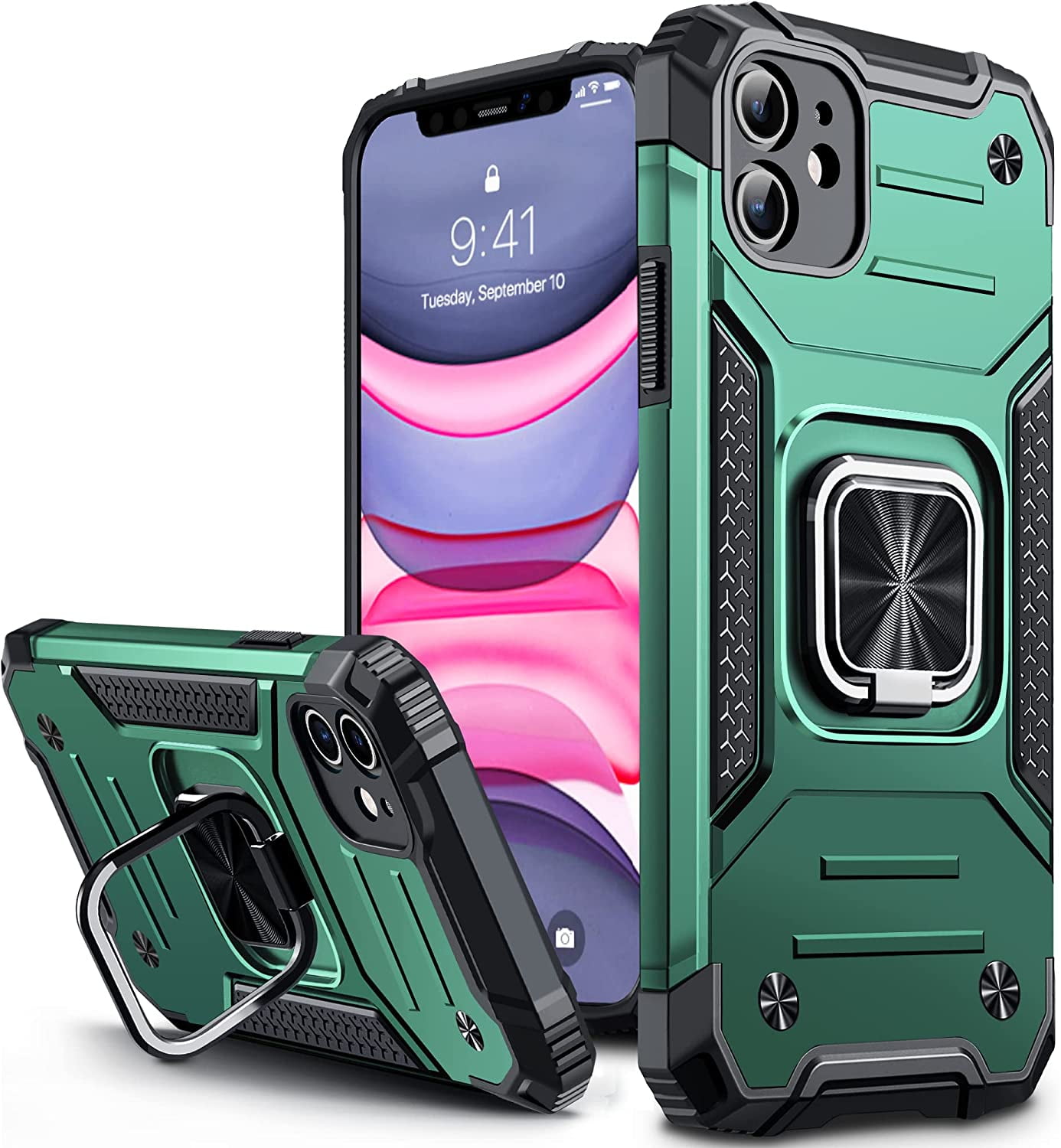 For Iphone 11 Case Stand Series Military Grade Drop Protection Metal Ring Holder Heavy Duty Design Shockproof Protective Phone Case For Iphone 11 6 1 Green Walmart Com